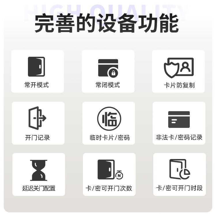 黔南这款智能门锁提供室内门锁和防盗门锁两种选择,其中室内门锁尺寸为 2806521mm,适配 5050 锁体;防盗门锁尺寸为 3657021mm,适配 6068 锁体,可满足不同场景的安装需求。它采用铝合金一体成型搭配钢化玻璃面板打造,兼具坚固耐用的品质与简洁美观的视觉效果。门锁支持蓝牙无线通讯,解锁方式丰富多样,密码、卡片、蓝牙、钥匙四种方式随心选择,满足不同使用习惯与应急需求。其工作温度范围为 - 20~70℃,能适应多数地区的气候条件,采用碱性电池供电,安装更换便捷,是兼具安全性与实用性的门锁选择。